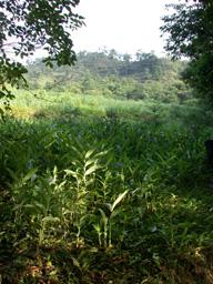 頗感興趣的是,沿著溪邊小徑往前行,寬闊的河邊地都是青綠的野薑花 莖與葉。這些花莖群聚在一起,讓我想起去年走三貂嶺瀑布群溪邊沿岸也是如此的盛況。