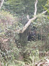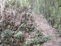 (鵝尾山翠竹林山徑上之遺跡,後面有人探出頭來....)