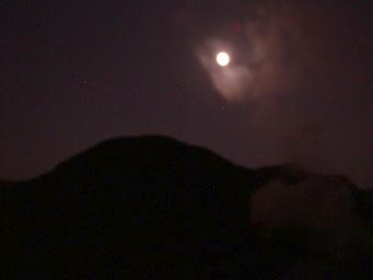 回到小油坑,眼看月色皎潔明亮,但硫磺噴氣瀰漫夜空,卻在七星山前形成光暈,猶如遙遠的銀河星系中正在誕生新星的瑰麗星雲。