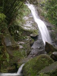而夢幻瀑布果然不負期望。步行的路程不長,除了雨後石階稍滑外。瀑前崖上小屋,師父清修與閉關。山澗流水淙淙,小魚與小蝦四處悠游。而好捉魚捉蝦看來果有遺傳。