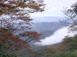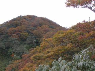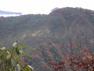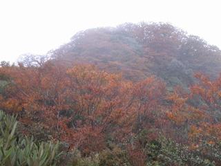 剛過登山口,陡坡上行。一路無人,本來還想今日登北插之人何其少也。但其實事實並非如此。半小時後已可略觀到對面轉紅的山頭,這時後面有一位登山者趕上來。這位劉先生是我本日登北插的貴人。"大部分的時間",我們偕伴同行,不過我只有在平路才能勉強跟得上他。劉兄就是那類把北插當作自己家後山爬的人。據他所言,上禮拜來北插時,山毛櫸的葉子才剛剛要轉黃。