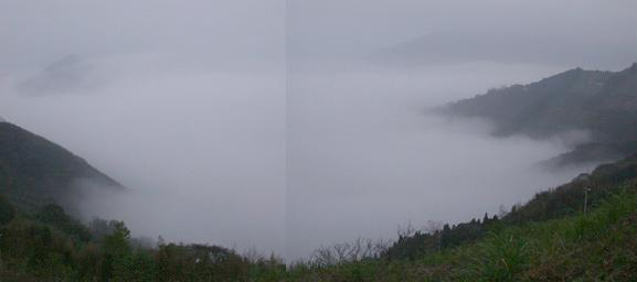三點三十分,我還在幫雲海拍照;科伯他們卻想要趕快下山了。我讓他們先走,自己先收拾腳架與裝備。等我開始下山,回頭再望一次基點附近,而霧竟然無聲無息地襲來,而這才不過一會兒光景。山上的氣候真是變幻莫測。