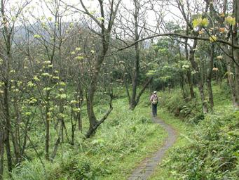 領路獨自在前方走著的紓非亞,在優美浪漫的紅淡山步道上,嚐到今天第二次被搭訕的滋味。