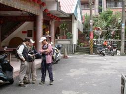 大軍既已抵達基隆車站,於是便從車站後方直接上山,這裡便是太平佛山早起會活動地點;雖然有兩百多階石階,但大軍如履平地直上飛鳳山頭砲台之處;有一位在附近種植杜鵑花的葉姓當地人士倉促間著雨鞋出迎。老恩在跟對面他的弟弟,大德山打招呼。葉姓人士獻當地山形稜線概況,並自言蕭葉本同宗,很樂意為我們說明對面那道定國山、紅龍山的稜線情形。要不是中午另有要事,不然他可以跟我們一起走。