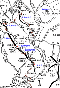總之從九華山下來,又經過好幾處早起會,沿途都有舊碉堡,但實在也記不了那麼多。最後從西定路出來,但隨即又上到往中平山。但由於都在跟老恩與雨傘大哥談到腳傷治療的事,所以也沒有用心去記得蕭郎是怎麼帶我們上山的。