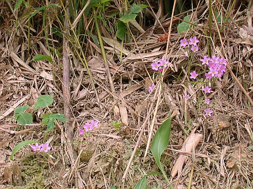 既然這個方向只有436 巷一條叉路,於是我就錯把馮京當馬涼,開始好好探索436 巷內的幾條路了。其實只要這時我有GPS ,就可以及早發現錯誤。不過也許輕鬆直接找到白匏湖,反而不會那麼好玩。進到436 巷後經過一座小廟遇叉路,首先選擇往左,這時候經過一處古厝院落。週遭環境清幽,白匏子樹葉隨風翻白,老農夫在古厝前幾畦地上鬆著土,路邊土坡上的小野花不知為何成為我攝影的焦點。這時候我回憶起小周遊記中的敘述,是有經過古厝的,於是便跟老農夫問路。古厝也有百年歷史,世居於此的老農夫說湖有啊,但不在這裡,要重新回到路邊畫著白線的馬路上(意指汐碇路),會經過幾家土雞城,到那裡再問人。後來找了一大圈後,我才意會到老農夫說的是舊庄街那裡的畚箕湖。