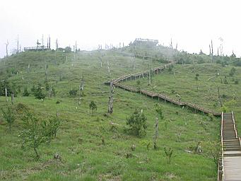 這次來到觀霧看到幾個改變。新的遊客中心與管理處。管理處後方的山坡就是yulun雲霧步道。同行的科伯說:這裡可以感受到木頭的怨氣。為了建步道,如果為了把樹快速移除掉而燒光它們,這樣實在太不人道了。我說,應該不是為了建步道而把樹木燒光的吧;最有可能是因為這裡本來就發生大火,步道是後來才建的。後來看到一塊解說牌上的文字,果然我推論沒錯。不過後來我才了解為什麼科伯一直在說這些有的沒的,因為他養的魚因為水質的關係死了一批又一批。