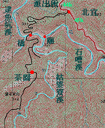 回家後看地圖,知道自己根本就沒有走到姑婆寮溪。而且據說深入姑婆溪還有營地..。因此心中有了打算,準備再來個有山有水的O 型。其實今天見識到秀麗宜人的「魚逮」魚坑溪本應該滿足,最主要是正午時分翠林映在潭水上的綠。但是因此對於傳聞中美麗的姑婆寮溪卻更嚮往了..。