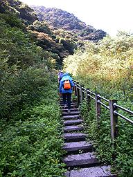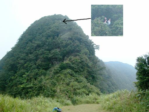 取完景,大家又爬上崖去。往前峰的路上遇到老恩與一家四人迎面而來。耐不住寂寞想要來看看崖梯的老恩兄剛剛創造獅頭山的新史蹟;這會卻是帶著旅聯網的忠實讀者一起來了。其中的爸爸說,他甚至知道我的遊記是從哪一篇開始有放相片的。我自己當然記不得了。