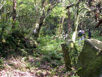 在太子碑附近,眾人大大的搜索了一番,卻還是找不到地圖上所標示的,可能位於此處的六、七號遺址。後來我站上瞭望台看附近的景物,猜測六號會不會在一排松樹附近?雨傘大哥卻說他剛剛鑽過草叢中去找過了,但並沒有發現。