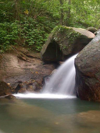 下到溪底,我跟大家介紹這個小瀑布的來頭,這是很多人很想裸泳的地方呢..。後來,為了取這個小瀑布的景花了一點時間,於是讓大隊先行,我自動從前鋒轉成後隊,一直到出了仁愛橋。我記得蕭郎在鞍部時曾說我又想偷懶;但我覺得領隊這一職是有能者居之,總不能叫一個手上沒GPS 的人當領隊吧,呵呵。
