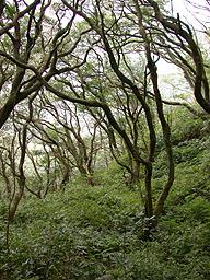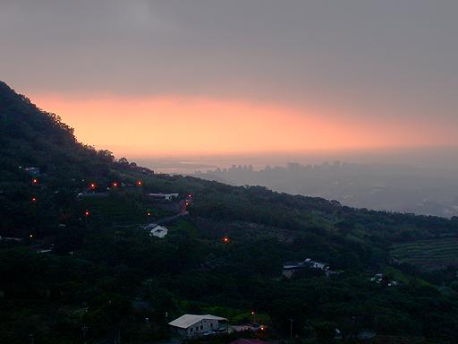 上到越嶺點,這裡是往向天池與面天山的叉路口。有兩人分隊往向天池以避開稍後面天山陡上與陡下的石階。面天山上風勢強勁還帶著寒氣。雖然略有薄霧,隱約可以看得清楚淡水、三芝海岸,與淡水河對岸的觀音山,字戀姐在此又鬧了一個笑話,由於見怪不怪,所以也不細表,大抵上就是把五分山搬到陽明山區,把觀音山從河南岸移到金山方面之類的。我懷疑她是不是孫悟空會念移山倒海的術語。因此從面天山的山徑下來時,就細細問她,是不是那個猴山岳步道上所說的事有譜啦?