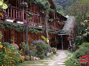 這樣不起眼的小叉路,從此進入山裡頭,裡面卻是一間間的民宿與庭園餐廳。這些地方佈置的多半美輪美奐,處處繁花似錦。遊客來到這裡去感受主人營造出來的休閒氣氛,互相填補心中所欠缺的部份。女主人很客氣的說明這個農場的環境與特色。我們從庭園的佈置與整理看得出主人的用心,這些不是簡單的事。提到為什麼這麼美麗的地方只有五間木屋供做住宿?主人說,佈置一間房間要二十萬元,然而只有假日才有人住房,實在是不划算。
