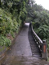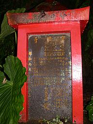 濛濛細雨的天氣,除了寺廟中偶有做法事傳出的聲音之外,週遭清靜無人聲,所以在寶明寺附近要怎麼參觀,怎麼看都不會有他人聞問。千江有水千江月,萬里無雲萬里天,多麼開闊的胸襟!而雨後清新的空氣正好洗滌旅人來之前塵世的煩憂。修行橋附近紅色外框的開路捐獻名冊石碑年代是昭和九年,而寶明寺存在的年代當更早於此。轉了個彎來到寶明寺的側面看到古樸的山門,上面書寫著乙未立冬,回來之後比照自製庚年表,看來應該跟日據時代無關,除非寶明寺建於十九世紀末。
