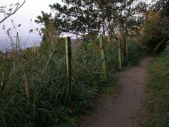 從元德寶宮上到大棟山頂的這一段,約走了十五分鐘,應該是唯一有舖步道階梯的一段,因此雖然一路陡上,不過走起來還算不會太累。我覺得沿途的相思樹林看起來還算優美,尤其是在夕陽西斜時分。
