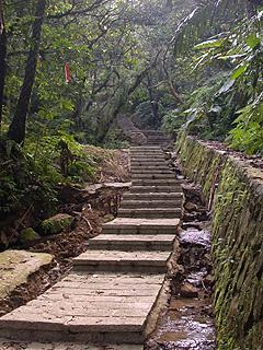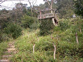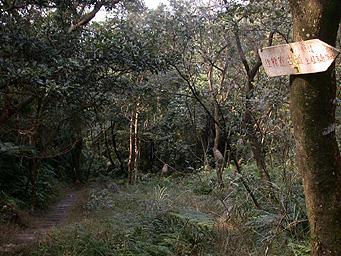 我注意到路右邊有一段小叉路,盡頭是一段須拉繩子的陡坡,我想到三年前似乎曾經看過這樣的陡坡似的,但是當時繩子太細,又下著雨,實在不敢嘗試。(其實這些都不是理由)。
