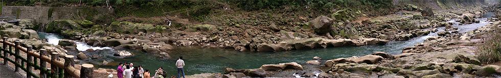接下來看壺穴,走鐵道,徐行漫步中閒談家常生活事,一群朋友出遊,大概也就是藉此找個相聚的理由吧,至於走了多少路,爬了多少山,總之盡興就好。在奇石碧潭的壺穴間,我當然還是努力取景,其他人就真的嗑起瓜子閒談大學畢業後的生活點滴。因此也就不急著趕火車回三貂嶺。在等下班車的同時,一群人倒是在大華車站前的小店又吃了起來。