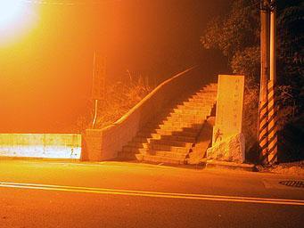 在觀景台上,已不是觀海景而是觀霧。澄黃色路燈,燈光穿不透霧,反而在濃霧中映出燈光與霧之間的景物倒影,煞是有趣。我在燈光下,擺出各式各樣的姿勢,看到投射在霧中的影子也隨我而動,我想峨嵋金頂的靈光現象大概也是同樣的道理吧。只是看到霧中的影子隨我身形而動,而舞動身形的我又是隨什麼而動?是我的心?我的慾念?還是無明薰陶的種子?亟於止息心念妄生的我看著這一片昏黄夜霧,不禁有些癡,也有些迷惘了。