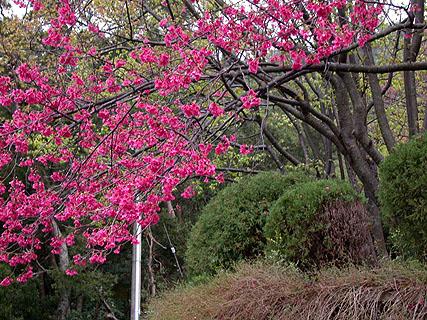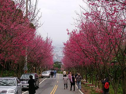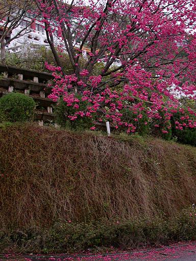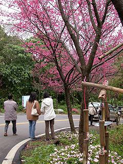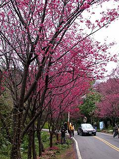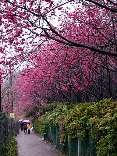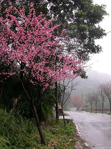 今日一路少人,倒是特地開車到此一賞早櫻的,亦所在多有。只是寒風霧雨中倚紅偎翠,究竟是何感覺?端看遊人有幾分幽情雅致了。