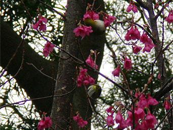 總之雖然一切都很冷,但是該看的都有看到了。是一個豐富的週末呢。先是復興三路的櫻花,果然過年後開得美極了。此次來發現在樹間掛有裝飾用的吊筒與燈飾,樹下另外栽有觀賞花草。而在枝叢間來去匆忙的綠繡眼還是對櫻花蜜一樣的捧場。