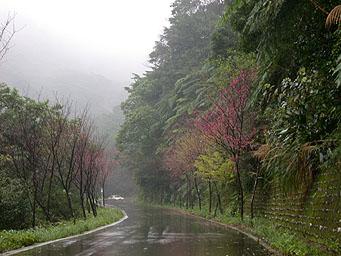 我個人覺得這一路的賞櫻重點反而不在青山路,而是在圓山草堂附近的北七路段,這一路上尚有大片未開的櫻花林。另外沿山道路往五腳松,道路清新,雖有霧,但平添緋寒山櫻之淒美。