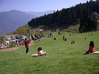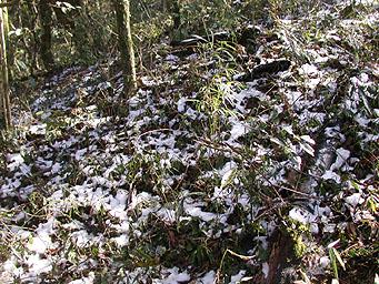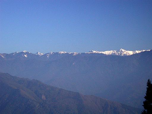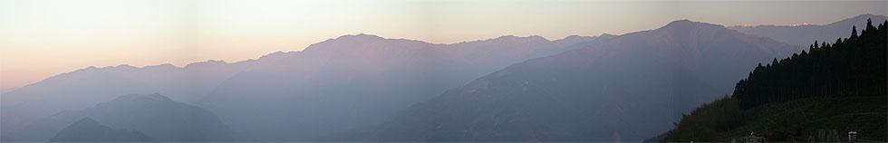 我一進入園區,就望見遠遠天邊有白雪靄靄覆蓋在一整道稜線,只是不知道是不是雪霸連稜,那右邊尖尖突出的山頭是不是大霸尖山?依照下午兩時許的太陽方位,那稜線應該是位於東南方位。後來小周兄說那尖尖的山頭不太像大霸,倒像是穆特勒部山。