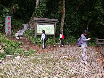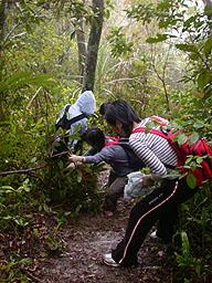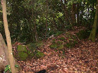 唯一還能有心情製造氣氛的,大概只有我一個吧。不過當時我正忙著拍照,早就落後他們一段距離。後來在途中隘寮遺址處稍停時,Jasmine才說,古道氣氛有點恐怖,她現在只想趕快把行程走完。呵呵,看起來她們真的是嚇到了。我今天似乎忘記我帶的是開心少女團,而不是梁山探險隊了。我想除了我之外,大概沒有人對於拍攝湮沒在荒煙漫草中的隘寮所小矮牆有興趣。