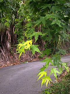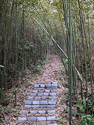 今天下午的陰沉天氣讓我們的古道之行的氣氛,從進入濃密的竹林與樹林後,開始變得有些許詭異。大家在黑暗的樹林間稜線上行走,雖然路徑還算清楚也平坦,但是途中大家都很沉默 ,沒人開口說話。