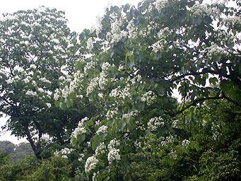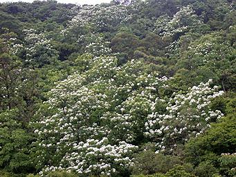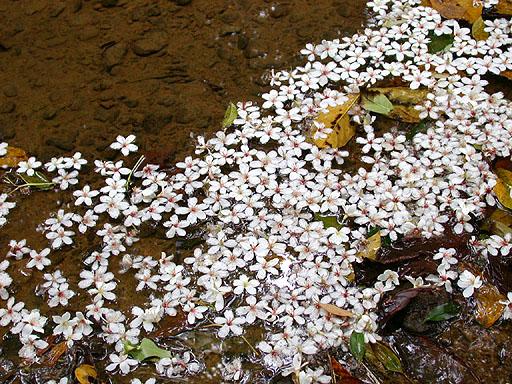 我覺得來翠湖賞油桐花,油桐花其實還不算開得滿山滿谷,不過卻有一樣景緻是其他地方少有的。那就是在翠湖上游的清清淺淺的小溪,會有許許多多落下的油桐花瓣,被溪中的枯葉殘枝所稍阻,而群集在一起徘徊留連。然落花雖似有意,流水只是隨處留情。