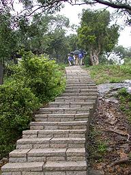 昨晚才規劃的第一千座,松山的五分埔山,其實在虎山下至松山商職的花崗岩步道上。雖然利用GPS 衛星定位,我們走入的小徑已經非常接近了GPS所標示的五分埔山基點所在,不過眾人在亂草橫生滿目瘡痍之中還是遍尋不著基點。那這第一千座還算不算?總不能拿附近的有應公廟充當基點。不過蕭郎說這當然要算,如果沒有基點的山不算的話,那他就只剩下七百多座了。