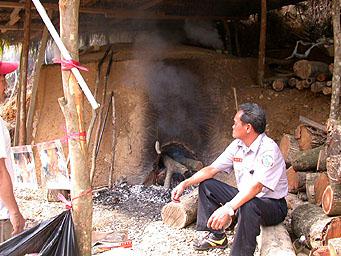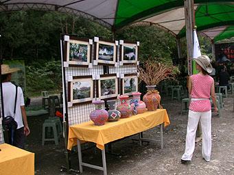 會場熱鬧的很,步道的啟用典禮,鄉親們輪流上舞台去唱歌。有一個歐巴桑在舞台上面唱「愛情恰恰」,我很想也跟著起鬨地喊:搖落去,搖落去..。另外一邊有個新造的木炭窯,窯中正生著火燒著木頭,前面掛著是木炭窯的建造過程 的解說,又有一組工作人員在旁邊監看木炭窯的生火冒煙..。