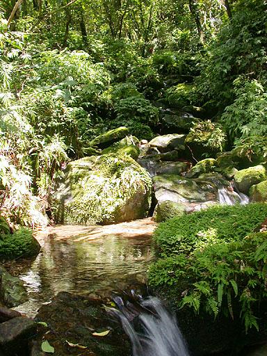 後來路跡清楚了,也漸漸看見沿途有潺潺流水橫過山徑。殿後的我只覺這個時候的光線映在溪水與生滿青苔的石頭上,真是青綠的可以。 不過老實說,照出來的影像還不是很滿意。