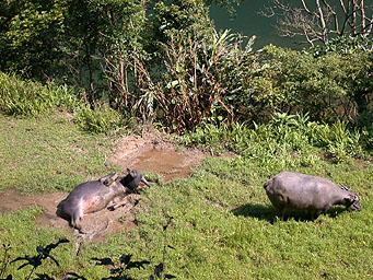在灣潭營地草原上看到的夏枯令人驚艷。最近的雨也讓灣潭古道沿途的瀑布水量豐沛。最壯觀的是垂掛在遠方林間的瀑布,乍看之下像是穿透林間的陽光,但那並不是光線,而確確實實是沖激在岩層上的瀑濂。只是光線太過強烈,陽春的照相機器無法把那種震撼性的感覺給拍下來。