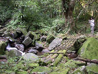 古道上溪瀑景緻頗有可觀之處,不過以前的學生大概忙著趕路無暇欣賞風景。我們沿途經過多處危橋,崩落的山坡;也涉過淺溪,走過幽暗的樹林,現在倒是覺得精采刺激。