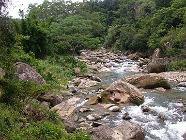 護魚步道本身的印象,嗯,總之有木棧道,有林中小徑,溪中有奇岩怪石。這個時節各色蝴蝶飛舞溪畔,雖然是大晴天下行走,因為賞心悅目,因為走路有風,依然頗覺愜意。