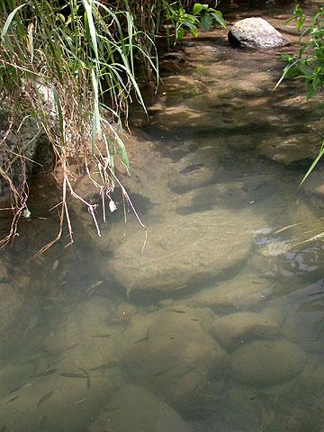 步道沿途都有說明牌示說明溪魚種類,一時之間也無法記得那麼多。還是月初遊北勢溪在三水潭時,蹲在橋上觀魚,聽蕭郎朋友蔡先生講解橋下各種游魚的種類,如此才是豐富精采,直讓我脖子曬紅了一層皮而不自知。