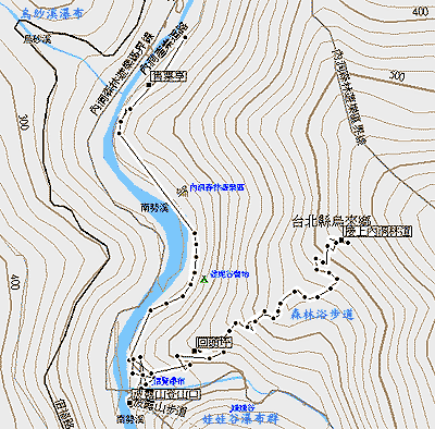 於是我們開始往森林浴步道走上去。印象中我似乎曾經走過這條步道。而且如果盡頭是接到內洞林道的話,那似乎應該不會很難走,或許沿途還可看到網友提及,烏來山區可能會有的紅花根節蘭。
