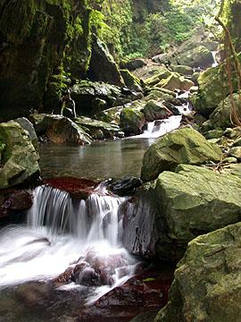 至於上回未能深入谷中,由於只是在幽谷前取景,但由於當天午後陽光甚強。強烈光線射入,週遭的岩壁與流水形成幽暗與光明的強烈對比。因此對於眼前茫茫渺渺的不明所在,有一種神秘感與強烈盼望深入探訪的期待。