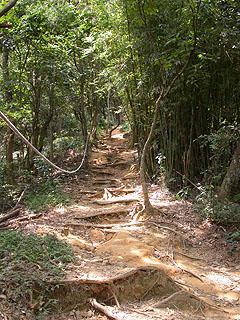 以上因飛鳳山而起的感觸都是產生在寫遊記的此時,在爬山的當兒,只是感覺熱、熱、熱,滿臉全身是汗,雖然是走在有林蔭的森林步道之中,因為前四十分鐘算是「略為」陡上到石璧潭山。山徑不難走,只是林中無風,夏天高溫的天氣中登山,本來就是猶如在洗免費的蒸氣浴。