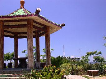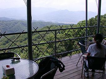 所以有業者腦筋動的很快,在外圍這條最長的登山山徑上,在登山者正好走到熱到不行,渴到不行的一個小時之後,在展望很不錯的地方,為來自都市的登山者端上時興的果茶、冰沙。我想這個策略跟只是在路旁販賣涼水比起來是很有效的。都市人爬山,除了健行的目的之外,悠閒氣氛的感受才是重要。坐在涼棚中,放眼望遠山,低頭看蘋果日報。100元一杯冰沙的價值,就在這裡。而我是亞當,不可免俗的,被蘋果給誘惑了。