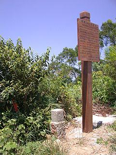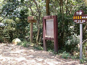 在叉路口先右轉往觀日坪,導覽圖上只畫到這裡,不過續行沿著馬櫻丹花徑約數分鐘可以來到中坑山,山頂的展望不錯,南方遠遠像伸出的拳頭的不知道是不是五指山?不過我到這裡主要是來撿中坑山二等三角點的。