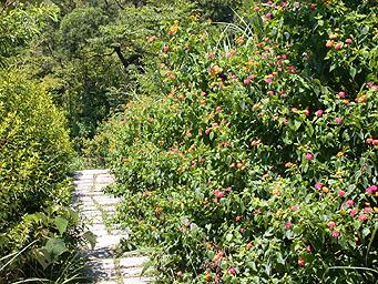 只是由觀日坪往中坑山這條短短的山徑上,蝴蝶未免多到不像話了吧,這是飛鳳山上的蝴蝶花廊。飛鳳山的名稱新解可以叫鳳蝶飛舞之山。我立在步道口陰涼處開始回憶莊兄在blog中提到拍攝蝴蝶的技巧,然後走入花叢中,心中暗道,美麗的花蝴蝶們,我來了,你們可不要怕羞的飛走啊。