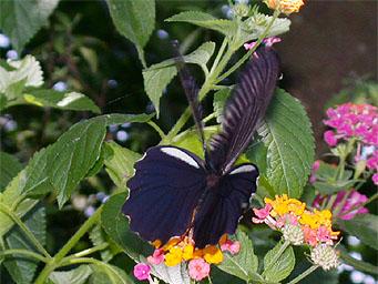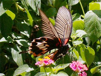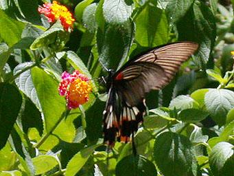 我從觀日坪走往中坑山,在中坑山上略為檢視一下影像,蝴蝶的翅膀振動的速度太快,以至於拍到的影像都是翅膀震動的殘影。如果要拍到蝴蝶靜態的感覺,至少要讓快門的速度快過蝴蝶翅膀擺動的速度;而且今天的光線充足,不怕因為快門太快讓進到光圈的光量不夠,必要時再強制閃光。思索已畢,從中坑山再原路回觀日坪又入花叢,這回獵豔有方,接下來就是跟拍,多拍幾張,果然大鳳蝶的美麗絢爛蝶衣正面觀、側面觀一一攝入鏡頭。於是心滿意足,轉頭快步下山。