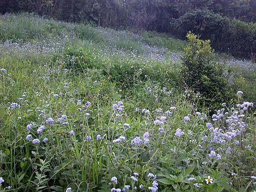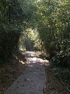 也因此與其弄篇長篇大論不如直接述說對於這條步道的深刻印象。這條步道雖然是一路緩緩上升,不過從高頂農莊以上至觀景台之間就都是走在大山背的背脊稜線上了。只是這背脊稜線都是在綠色林蔭之中,竹林有竹林的翠綠,杉林有杉林的清幽,由於都在稜線上,西斜的光線恰如其分地穿透過來映在山徑上,多一分則嫌太強烈,少一分則嫌太晦暗。我漫步在山徑享受稜線林蔭帶來的直沁入至心中的舒暢。沒有中午在飛鳳山山徑的汗流浹背,現在身心安定下來之後,清風吹過頭頂上杉林之間枝葉摩娑聲,宛若一陣陣浪濤聲傳入旅人的耳內,迴盪在虛空的心,來回擺盪,漸漸地、漸漸地淡去,終至無聲無息在心裡不著任何痕跡,來去自在。