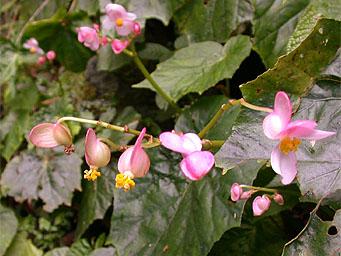 中指峰這條登山徑在山腰處有一段腰繞,然後才又繼續陡上山。我們在腰繞的山徑上,雨開始大了起來,不過幾分鐘後,雨又轉小,我們於是繼續上行。而這一路上都架設繩子來確保。最令我驚豔的莫過於那沿途的秋海棠了,群聚齊開放,與水鴨腳小巧的模樣又不盡相同。