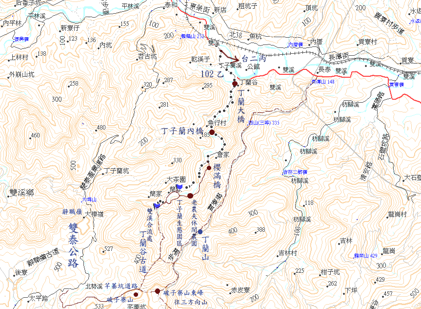 쿤¹D102¤½¸ô±qÂù·Ë©¹°^¼d¦³¤@¬q¥t¶}·s¸ôºÙ¬°¥x¤G¤þ¡A¥x¤G¤þ¤]´N¬Oì¥_38¬a¸}¹D¸ô¡A¥Ñ¤Q¤À¦ÜÂù·Ë¡C©Ò¥Hªº¿¤102¤½¸ô¡A²{¦bºÙ¬°¿¤102¤A¡Cn¥h¤B¤lÄõ§|¡Aì´N¬On¨«Âªº¿¤102¤½¸ôªº¡C±q102¤A¤½¸ô¥kÂà¶i¤B¤lÄõ§|²£·~¹D¸ô¡A¹D¸ô¤@¶}©l¬ï¹L¥Á®a¡A¸ô±¬Û·í¯U¯¶¡A¥u®e¤@½ø¤p«È¨®³q¹L¡AµLªk·|¨®¡C©Ò¥H·í¨®¤@¹L¤BÄõ¤j¾ô¬Ý¨ìÁŵM¶}Á諸¤B¤lÄõ·Ë¬üÄR´º¦â«á¡A»á¯à¦³¶i¤J®çªá·½¤§·P¡C