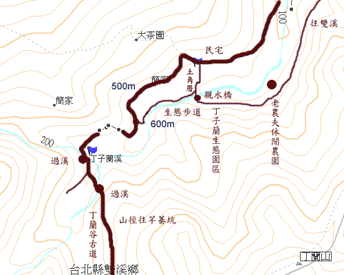 ·«B¹L«á¡A±q¤s¾À©b«¦Ó¤Uªº·Ë¤ôº©¹L¸ô±¡A¦]¬°¨B¹D»P¤s©Y²¤¦³¸¨®t¦Ó§Î¦¨¤pÂr¡A »á¦³¿³¨ý¡C¤S¦æ¤@·|¡A¥ª¤U¬°¥ÍºA¶é°Ï¨B¹D©¹¤U¦Ü¤B¤lÄõ·Ë¡A¦¹³B¦³¼Ð¥Ü©¹¥X¤f500¤½¤Ø(¥X¤f¤è¦V¬O«ü§Ú¨Óªº¦a¤è¡A¤£¬O©¹·Ë¨¦)¡C§Ú¿ï¾Ü«e¦æ¡A¤£¹L¸ô®|¨ÌµM¼e¤j²M·¡¡A¬O¤@¯ëªºªd¤g¸ô¡A§Úı±o³o¥»¨Ó´N¬O¹A¸ô¡C