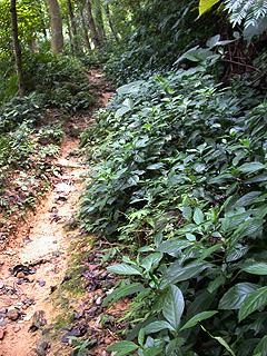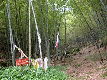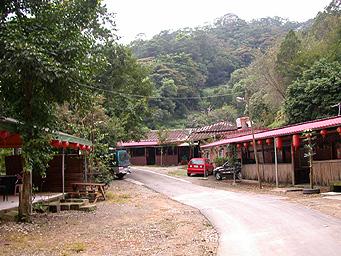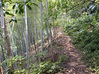 回到叉路口繼續下山,經過一大片漂亮竹林,山徑就在竹林中過,不過說起我所見過最茂密無邊無際的竹林,第一名還是屬嘉義的瑞太古道。穿出竹林就接回產業道路,也就是金面山的第三登山口,從此再走一會兒,就到阮家莊土雞城。這阮家莊其實是有好幾家的,彼此都有兄弟血緣關係。我經過時,他們正在切菜準備晚餐。我很懷疑,這麼深山裡面有足夠的客源能夠開到三家土雞城嗎?事實上我是多慮了,當我走回第一登山口時,好幾輛小客車正開進狹窄的山路來。