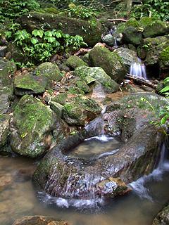 | 小瀑布叉路口 | 沿溪上行,像馬桶的石頭 |