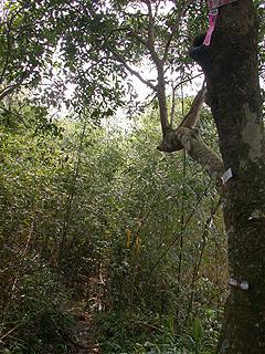 這段路線,在還沒有上稜之前,有不錯的溪流竹林景緻。上稜之後,偶而從稜線樹梢縫隙看看群山,也頗有樂趣。